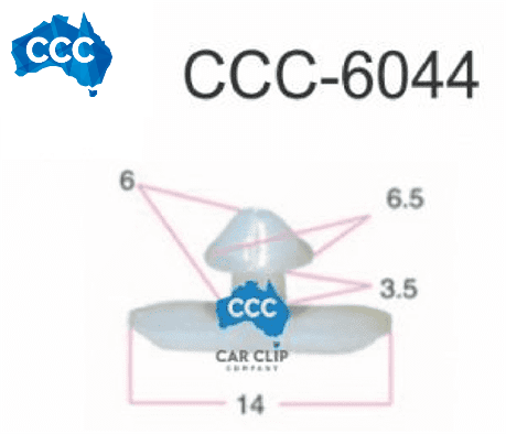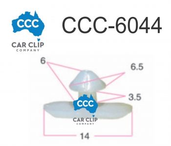 White Retainer Clips 25pcs CCS-6044 Car Clip Company manufactures high quality car clips and automotive clips, rivets car clips, scrivets car clips, fasteners, panel clips, Grommet screws, exterior moulding clips, door trim clips, Christmas tree clips. For fast Australia wide delivery phone 0499 001004.