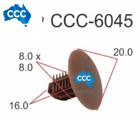 Brown Toyota Hiace X-Tree Clips 25pcs CCS-6045 Clip Company manufactures high quality car clips and automotive clips, rivets car clips, scrivets car clips, fasteners, panel clips, Grommet screws, exterior moulding clips, door trim clips, Christmas tree clips. For fast Australia wide delivery phone 0499 001004.