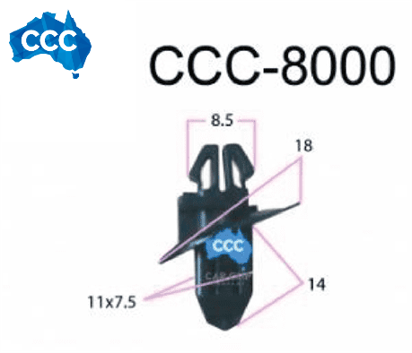 Car Clip Company car clips and Automotive Clips for a Toyota Black Body Flare Clips 25pcs CCS-8000 Clip Company manufactures high quality car clips and automotive clips, rivets car clips, scrivets car clips, fasteners, panel clips, Grommet screws, exterior moulding clips, door trim clips, Christmas tree clips. For fast Australia wide delivery phone 0499 001004.