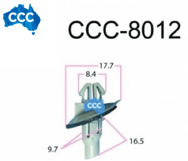 Car Clip Company car clips and Automotive Clips for a Toyota Grey Body Flare Clips 25pcs CCS-8012 Clip Company manufactures high quality car clips and automotive clips, rivets car clips, scrivets car clips, fasteners, panel clips, Grommet screws, exterior moulding clips, door trim clips, Christmas tree clips. For fast Australia wide delivery phone 0499 001004.