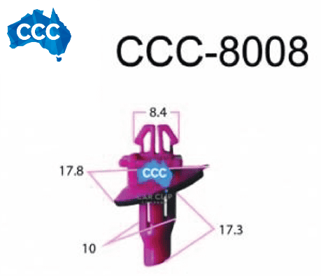 Car Clip Company car clips and Automotive Clips for a Toyota Maroon Body Flare Clips 25pcs CCS-8008 Clip Company manufactures high quality car clips and automotive clips, rivets car clips, scrivets car clips, fasteners, panel clips, Grommet screws, exterior moulding clips, door trim clips, Christmas tree clips. For fast Australia wide delivery phone 0499 001004.