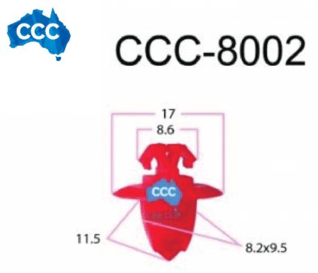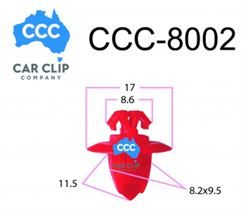 Car Clip Company car clips and Automotive Clips for a Toyota Red Body Flare Clips 25pcs CCS-8002 Clip Company manufactures high quality car clips and automotive clips, rivets car clips, scrivets car clips, fasteners, panel clips, Grommet screws, exterior moulding clips, door trim clips, Christmas tree clips. For fast Australia wide delivery phone 0499 001004.