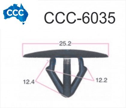 Black Toyota/Hyundai Trim Retainer Clips 25pcs CCS-6035 Car Clip Company manufactures high quality car clips and automotive clips, rivets car clips, scrivets car clips, fasteners, panel clips, Grommet screws, exterior moulding clips, door trim clips, Christmas tree clips. For fast Australia wide delivery phone 0499 001004.