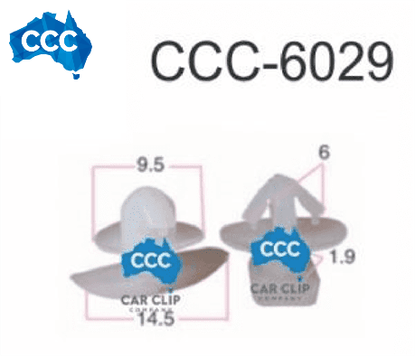 White Trim Retainer 25pcs CCS-6029 Car Clip Company manufactures high quality car clips and automotive clips, rivets car clips, scrivets car clips, fasteners, panel clips, Grommet screws, exterior moulding clips, door trim clips, Christmas tree clips. For fast Australia wide delivery phone 0499 001004.